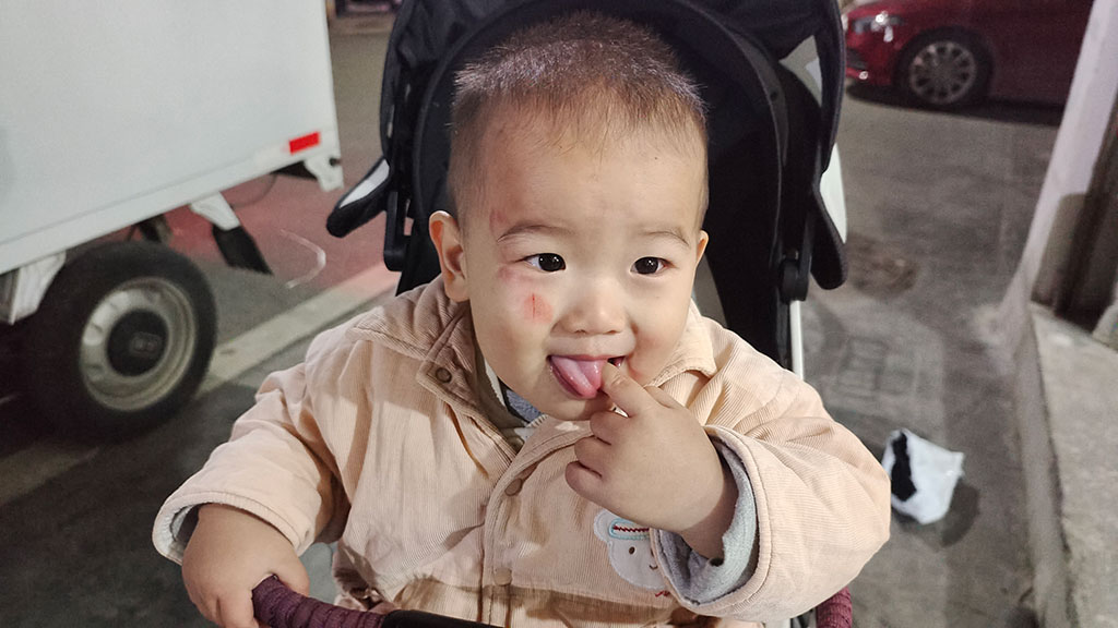 昨天回家,父母一脸的紧张,大致猜到什么事,母亲像犯错的孩子说道,没有把老二看好。因为爷爷当时把孩子带出去了,还没回家,我心想,要是还能出去浪,自然也不会有大碍。回来一看,整半边脸都红了,还有一条红丝,问是怎么了,原来调皮仔跑去动装修废弃的木板,结果倒下去压到了,还好没什么大碍。